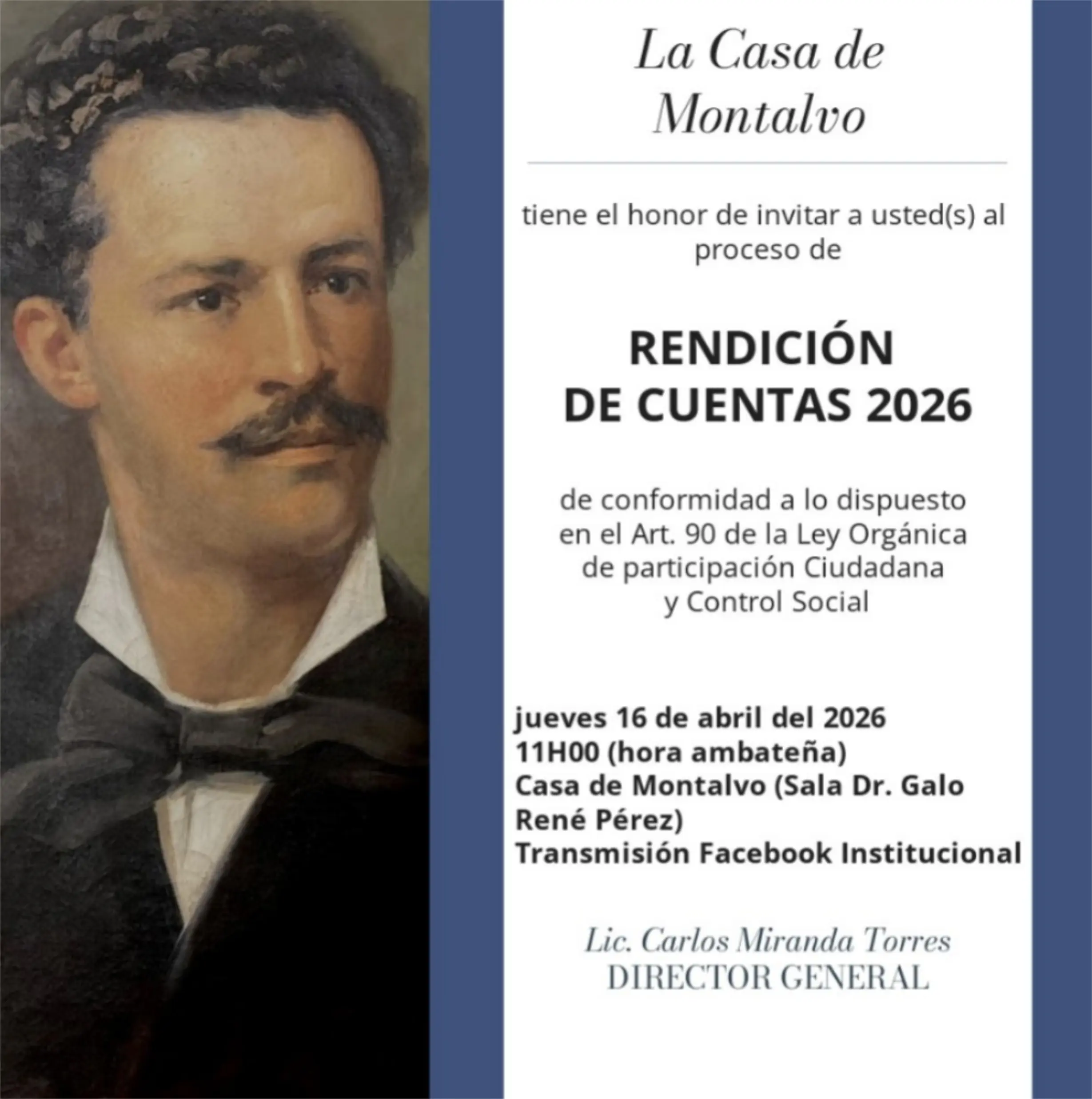 La Casa de Montalvo tiene el honor de invitar a usted(s) a la conferencia virtual: «135 AÑOS DEL FALLECIMIENTO DE DON JUAN MONTALVO»…